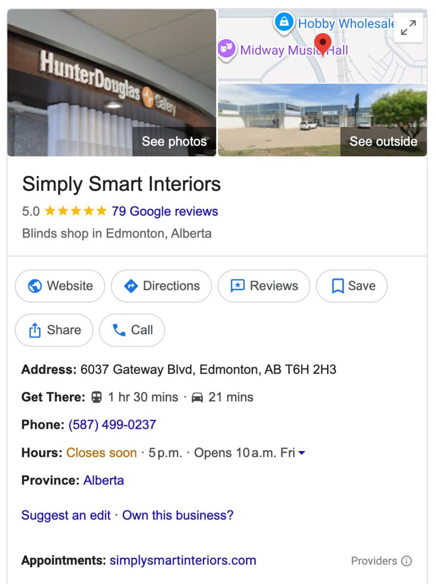 Their primary goal was straightforward: Rank for “Blinds Edmonton.”